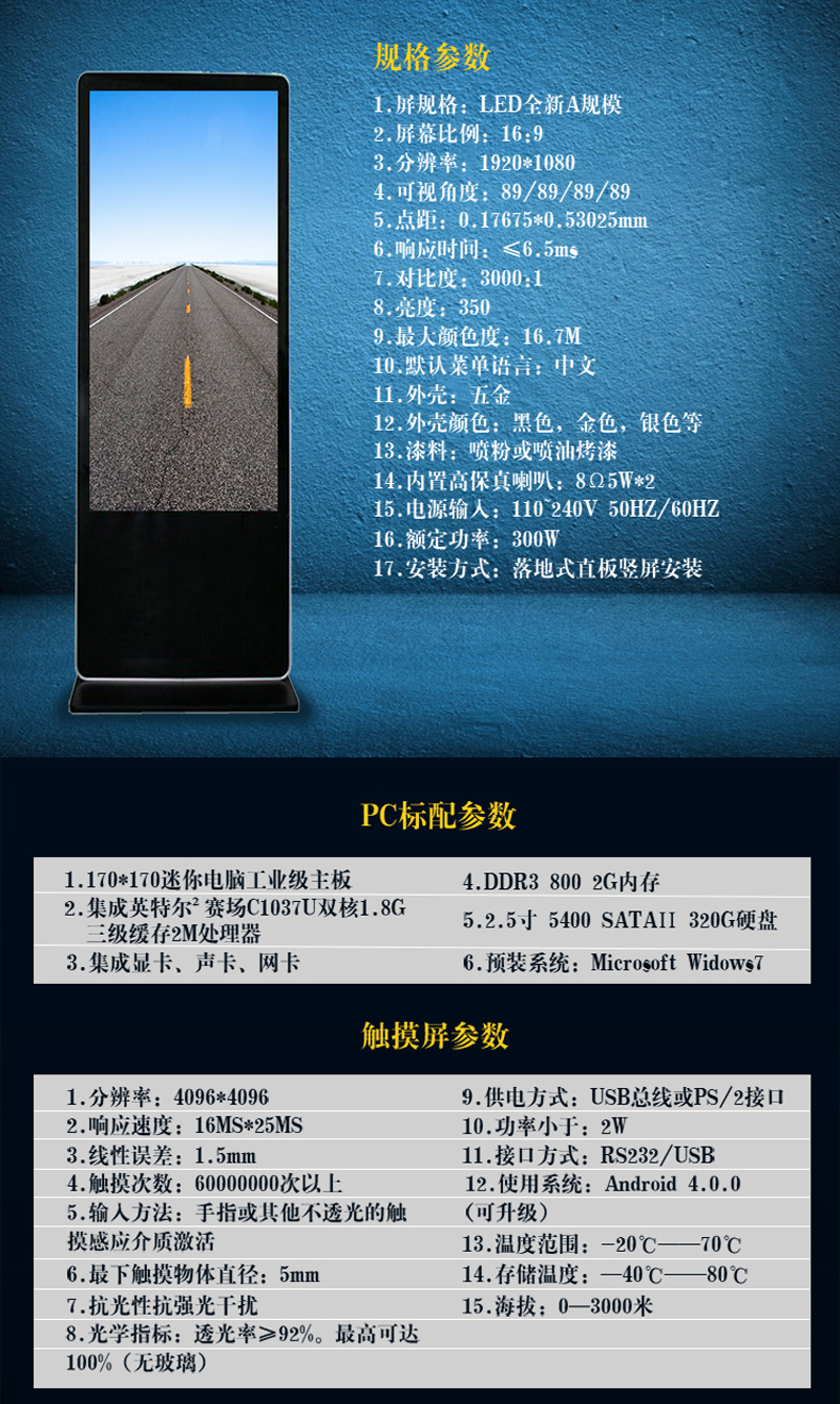 | 安裝方式: | 落地豎屏 |