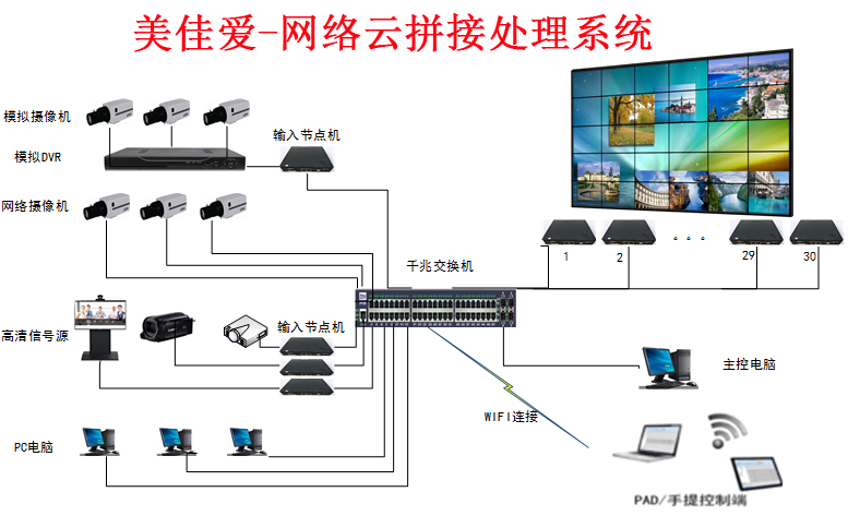 網絡云拼接處理系統是一款:結合現在需要解決大量監控及視頻圖像的解碼,改進傳統集中式多屏處理系統的不足,以及新的市場應用發展趨勢而出現的——大量視頻解碼、任意大屏拼接、開窗漫游的多功能多屏圖像處理系統。
